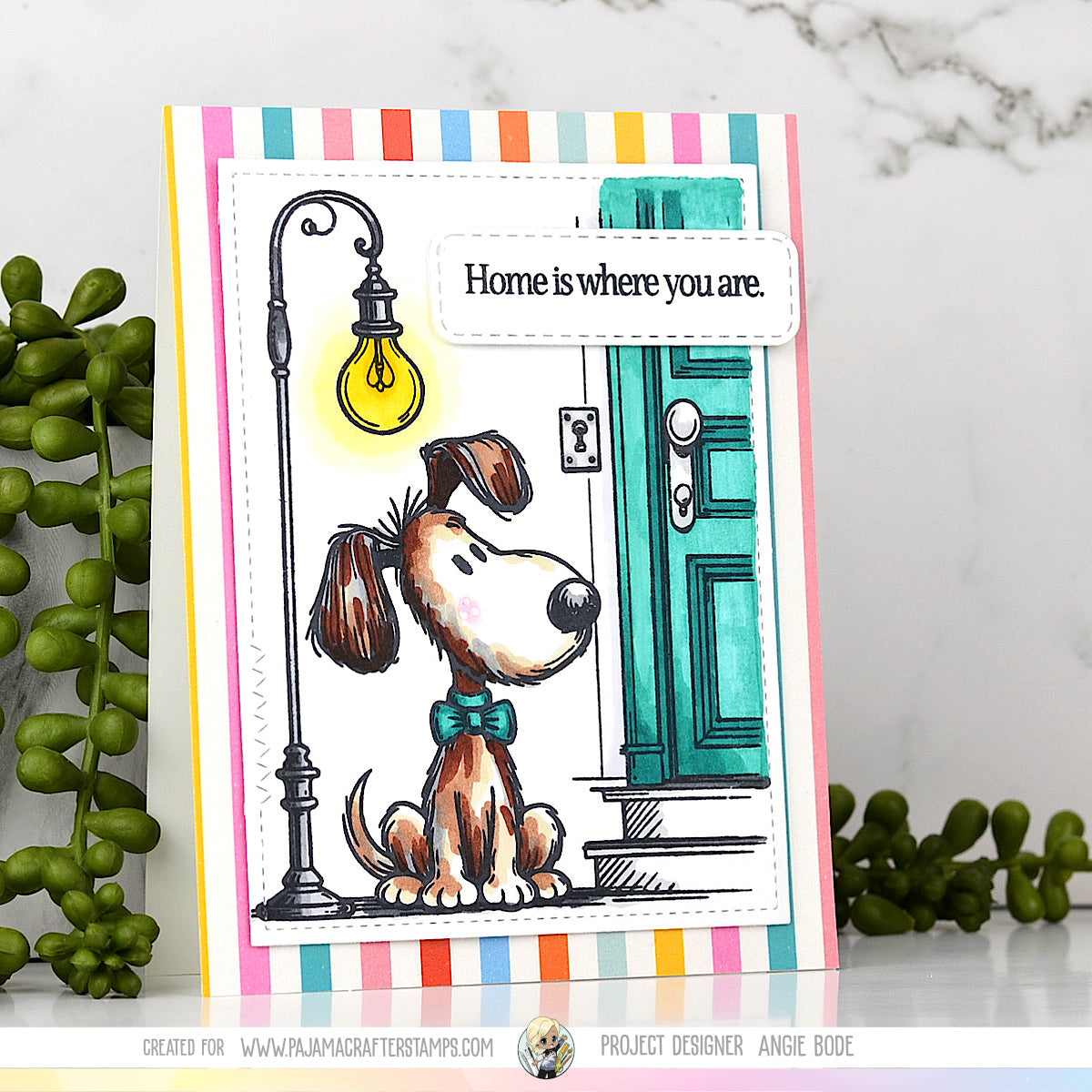 The Forever Loved Stamp Set by Pajama Crafter Stamps is a beautifully illustrated 4x6 photopolymer set featuring an adorable dog patiently waiting by the door—capturing that emotional moment every pet lover understands.