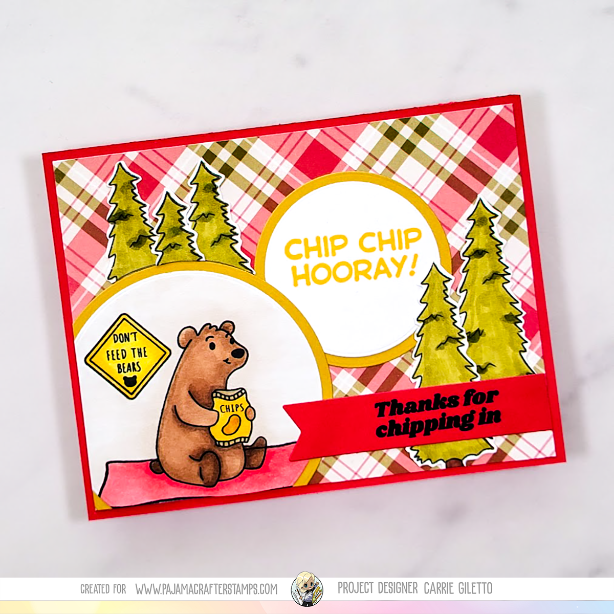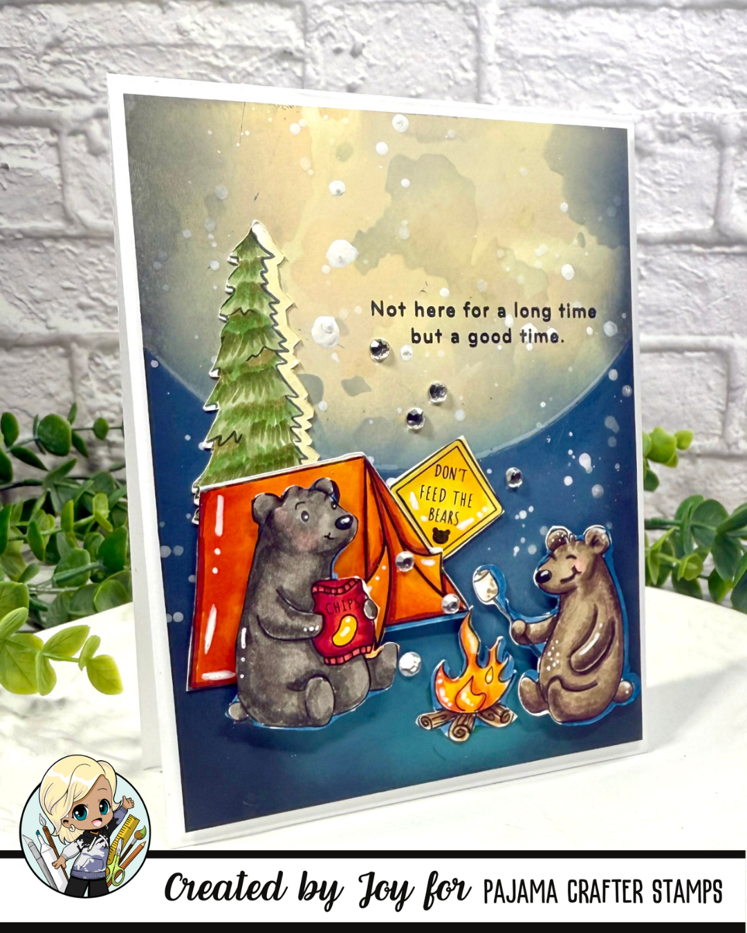 Happy Camper is a 4x6 inch clear photopolymer stamp set illustrated by Kayla Ruble. This stamp set contains 7 images and 2 sentiments.