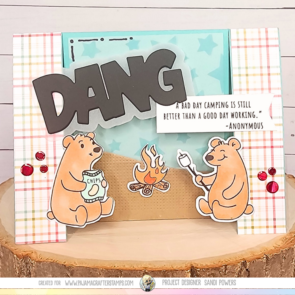 Happy Camper is a 4x6 inch clear photopolymer stamp set illustrated by Kayla Ruble. This stamp set contains 7 images and 2 sentiments.